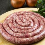 Linguiça fabricada com 100% de carne de pernil de cordeiro.